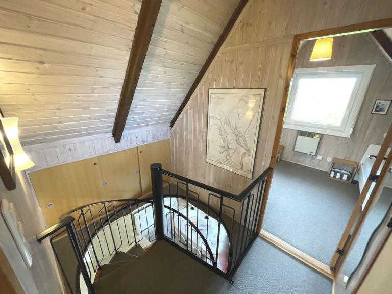 • Im Obergeschoß befindet sich 1 Schlafraum mit 2 Einzelbetten 200x90cm, 1 Freizeit-/Ruhezimmer mit TV und Schlafcouch sowie ein zusätzliches WC.